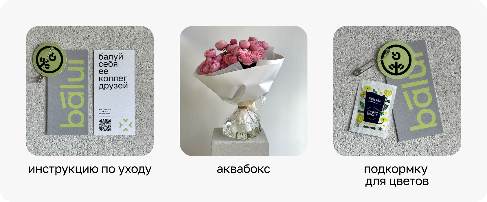 Букет доставляется на аквабоксе с инструкцией по уходу и подкормкой. Мы с радостью соберем букет большего или меньшего объема по вашему желанию.